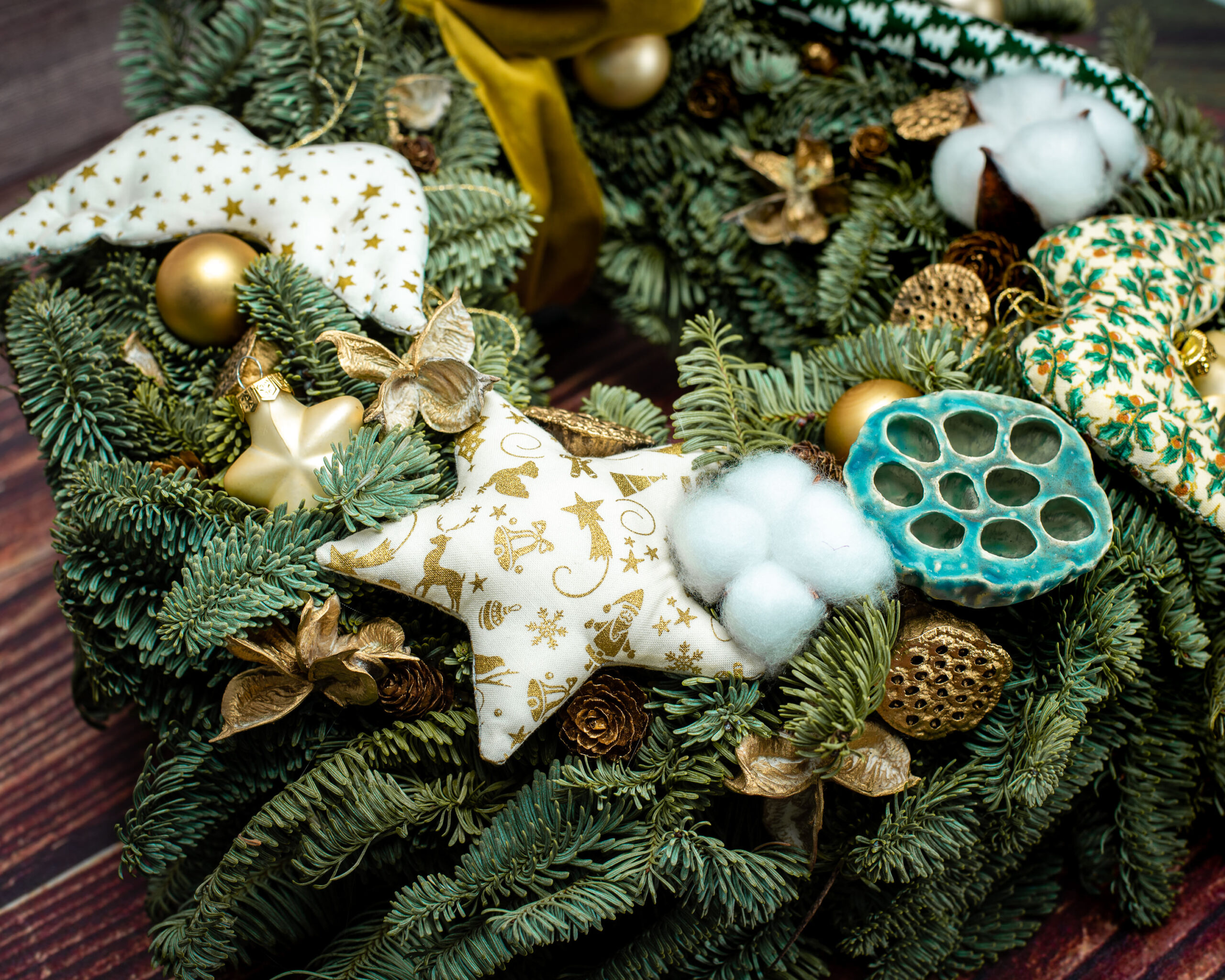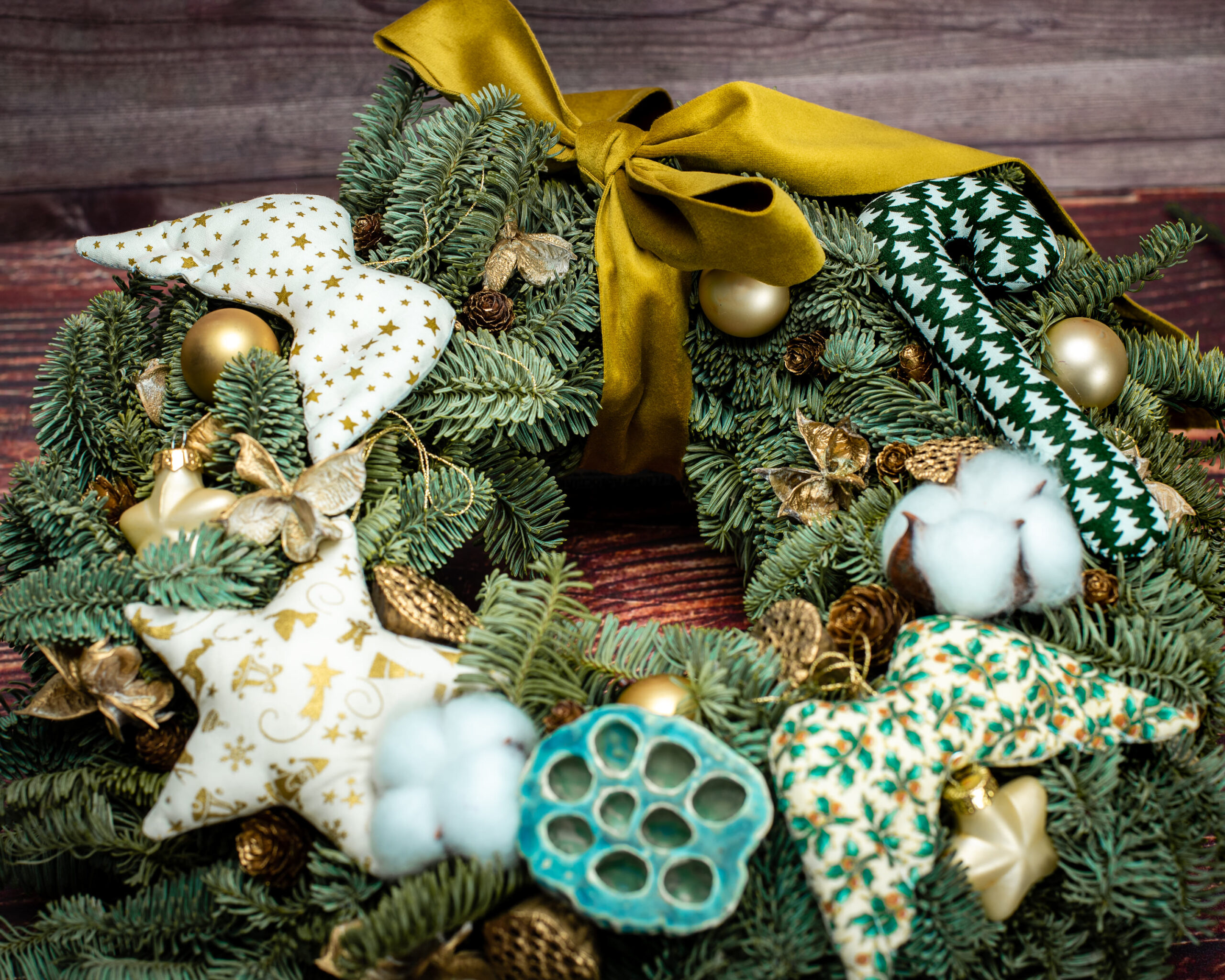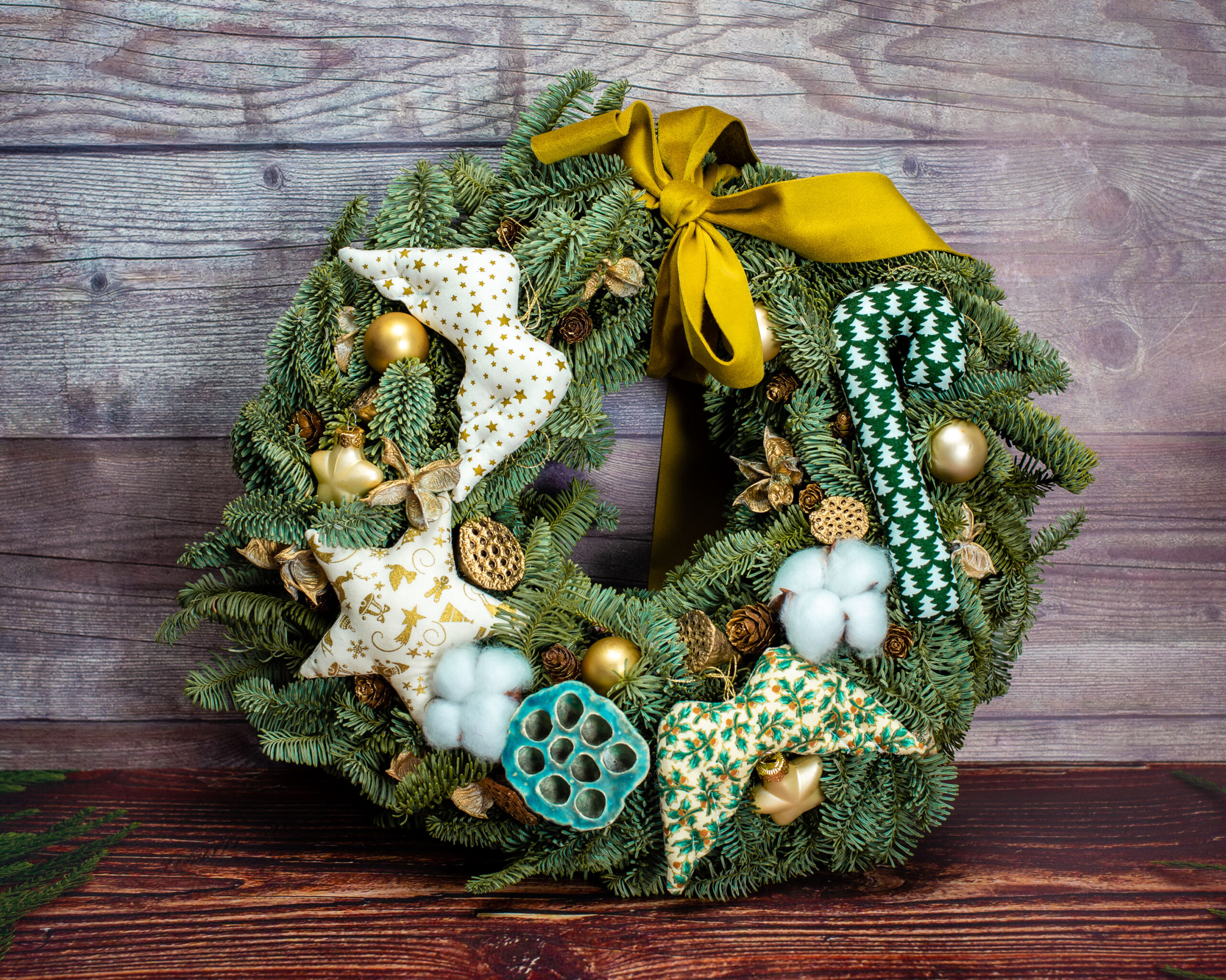 Coroniță de Crăciun din brad natural, accesorii naturale și handmade. D30 cm.