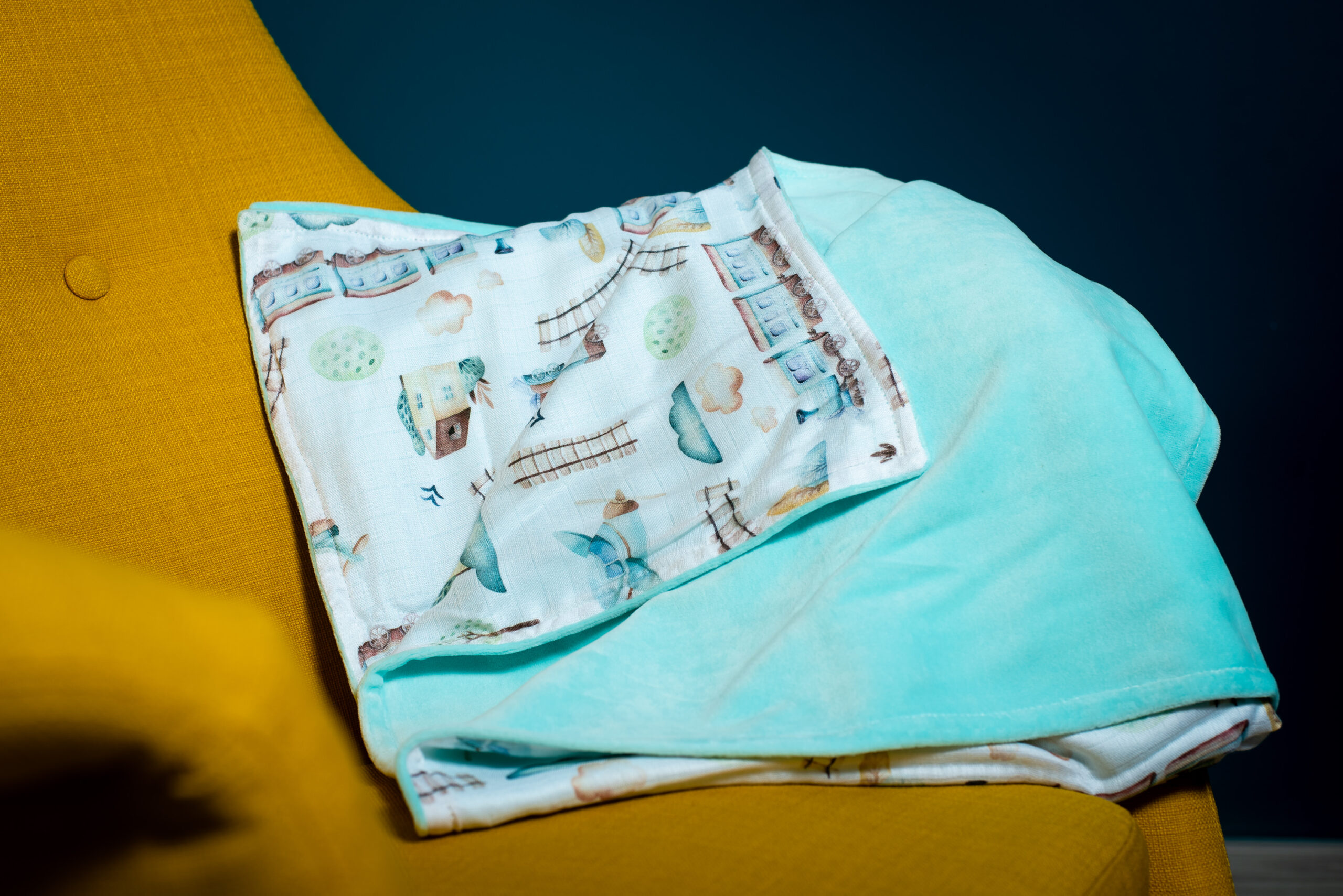 Păturicile noastre sunt realizate manual cu multă dragoste și atenție la detalii.Păturica plușată poate fi un cadou inspirat pe care să îl oferiți noilor părinți, iar pentru bebe un obiect de neuitat. Păturicile noastre sunt realizate handmade din cele mai bune materiale, certificate Oeko-Tex. Această păturică este realizată din muselină din bambus, imprimată digital, culorile fiind astfel foarte rezistente la spălare. Plush-ul este subțire și plăcut la atingere, în culori vii, putând fi foarte atrăgător pentru bebeluș.