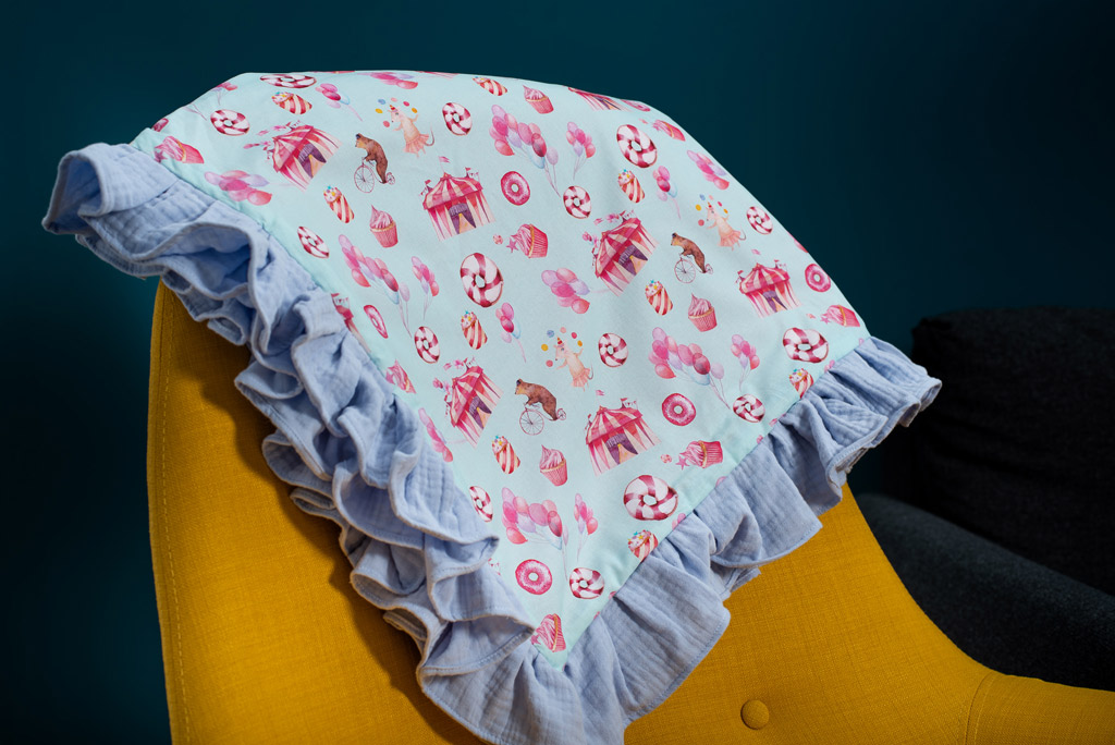 Pãturicile noastre sunt realizate manual cu multã dragoste și atenție la detalii.Pãturica plușatã poate fi un cadou inspirat pe care sã îl oferiți noilor pãrinți, iar pentru bebe un obiect de neuitat. Pãturicile noastre sunt realizate din cele mai bune materiale, certificate Oeko-Tex. Aceastã pãturicã este realizatã din bumbac imprimat digital, culorile fiind astfel foarte rezistente la spãlare. Plush-ul este subțire și plãcut la atingere, iar volãnașul decorativ, realizat din muselinã, poate fi foarte atrãgãtor pentru bebeluș.