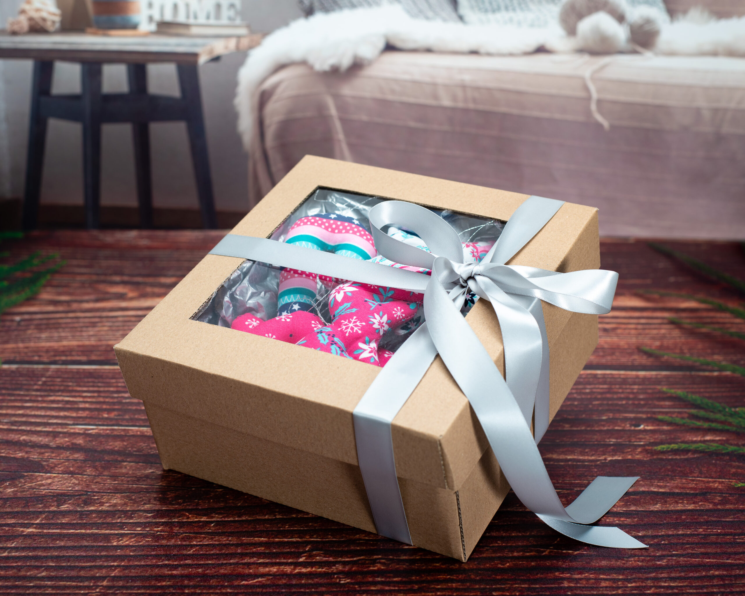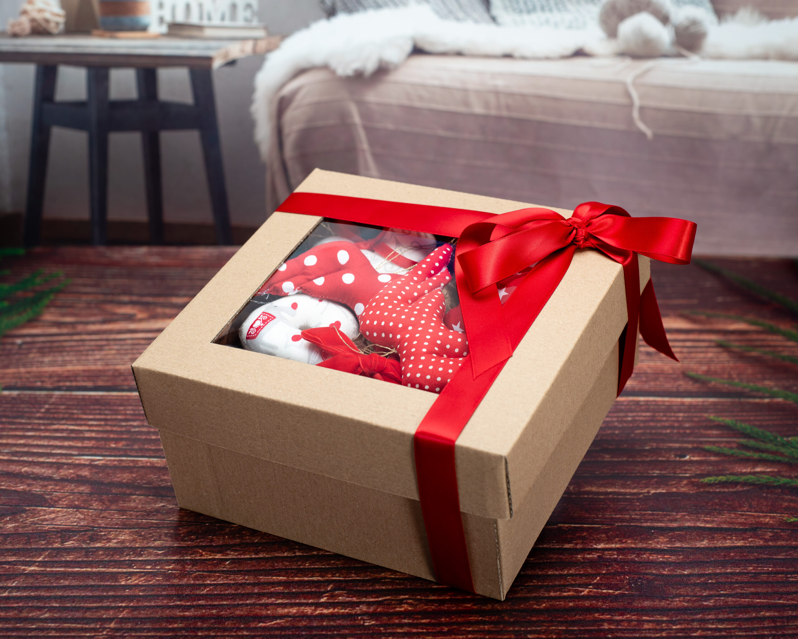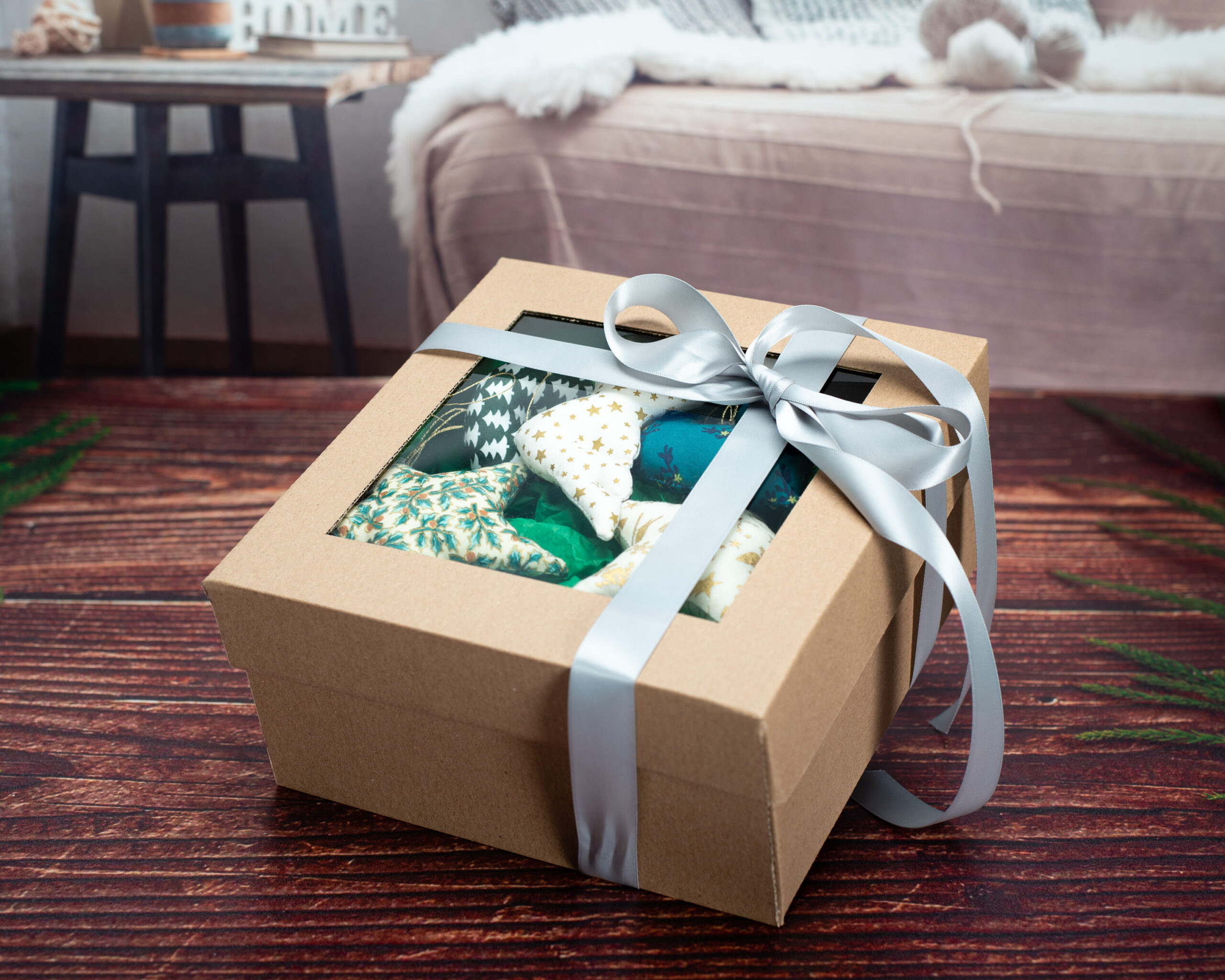 Decorațiunile sunt lucrate manual din bumbac certificat, fiind umplute cu puf siliconic antialergenic. Timpul mediu de realizare a unei astfel de cutiuțe este de aproximativ 8 ore lucrătoare. Modalitatea de ambalare este identică cu cea prezentată în fotografii.